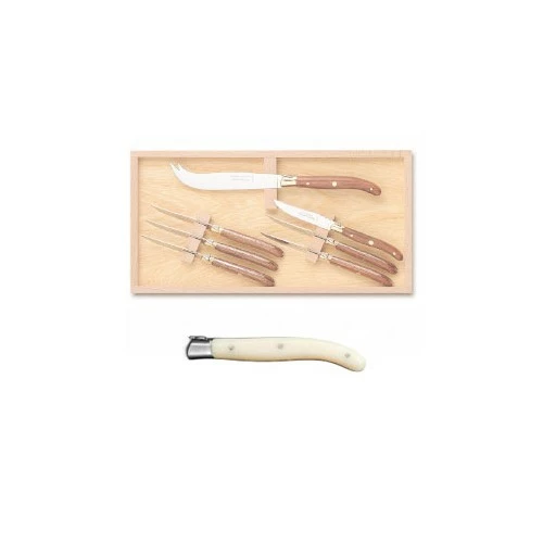 Chaque couteau de ce service à fromage est entièrement fabriqué en France, dans les ateliers du Maître Artisan Coutelier Claude Dozorme.