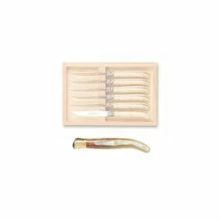 Le dessert est une des étapes les plus importantes d’un repas, entre amis ou en famille. C’est pourquoi, afin de déguster vos desserts préférés dans les meilleures conditions, nous vous proposons ce coffret de 6 couteaux à dessert Laguiole.