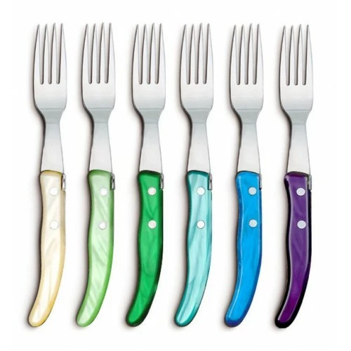 Les manches colorés de ces fourchettes peuvent être assortis au reste de vos couverts. Dans un coffret, vous avez le choix entre 19 teintes différentes que vous pouvez unir ou panacher.